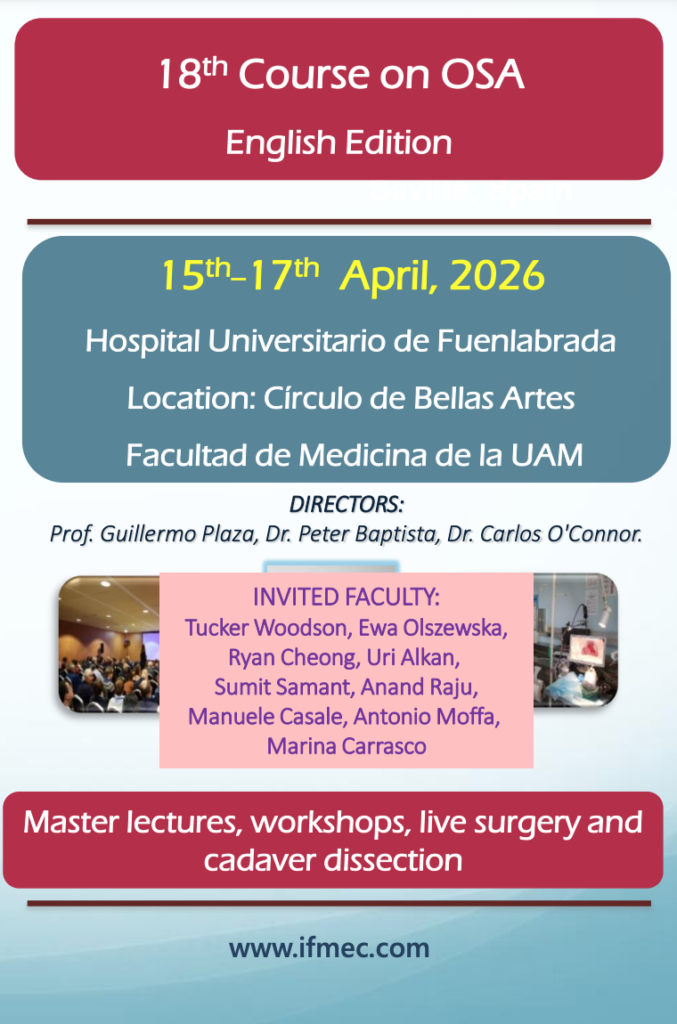 PROGRAM COURSE INFORMATION We present our 18th Course on Obstructive Sleep Apnea (OSA). During this ENGLISH edition of the course, we will review the advantages of drug-induced sleep endoscopy (DISE), as well as major techniques for tongue and palate surgery and myofunctional and dental treatment of OSA. Come and join us with master class conferences, attend live-surgery […]